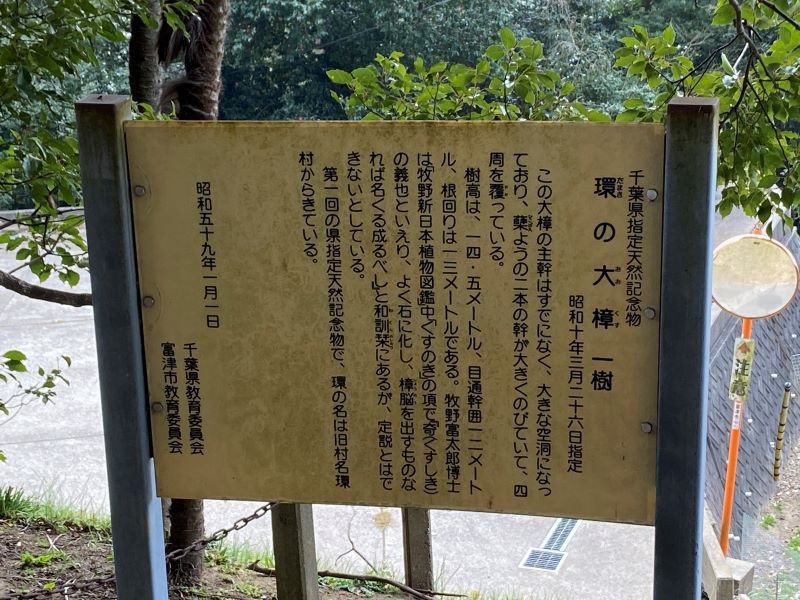 「DATA」は所在地:千葉県君津市賀恵淵。市指定天然記念物。新日本名木百選。推定年齢300年以上。幹回り8.9M。樹高19M。