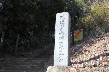 更に、解らないことがもう一つ。神社脇に「大山阿夫利神社参道」の石碑が建つ。(写真)