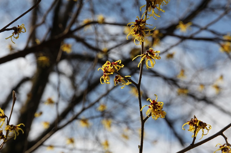 ルートには「椿」はまだまばらだが、ここかしこに満開の「蝋梅」が今日の青空に枝を伸ばしている。(写真)しかし、今日はそれらを伝える写真のレッスン受講は諦め、ひたすら、杖に頼ってヨチヨチとトレッキングルートを上り下りして、最短のルートで、先ほどの受付のある小屋に帰り着いた。