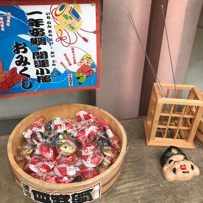 若き参詣者達の買い物で賑わう社務所で「お由緒書きを頂けますか」と頼むと、そんな依頼はないのだろうか、気持ちよく出してくれる。私もお礼に、いろいろ種類がある御神籤の中から2百円の「とんぼ玉根付入り 恋のおみくじ」を購入。帰宅後、開けてみると、『中吉。良縁への道しるべは、身に纏うものを新調せよ。おもてから見えぬ肌着も常に清々しく保ち、内側からあふれる自信を身につけよ。(お相手の)星座はてんびん座、血液型はAB型、同い年で、午歳が良い』とのご宣託。もう少し早く教えてもらっていればなー。