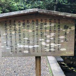厚紙の片面刷りの「御由来」を頂く。日本最大の幟10本や宝剣・歌集など、この湧水の他にもこの大きな神社には見るべきもの、知るべきことが沢山あるらしい。