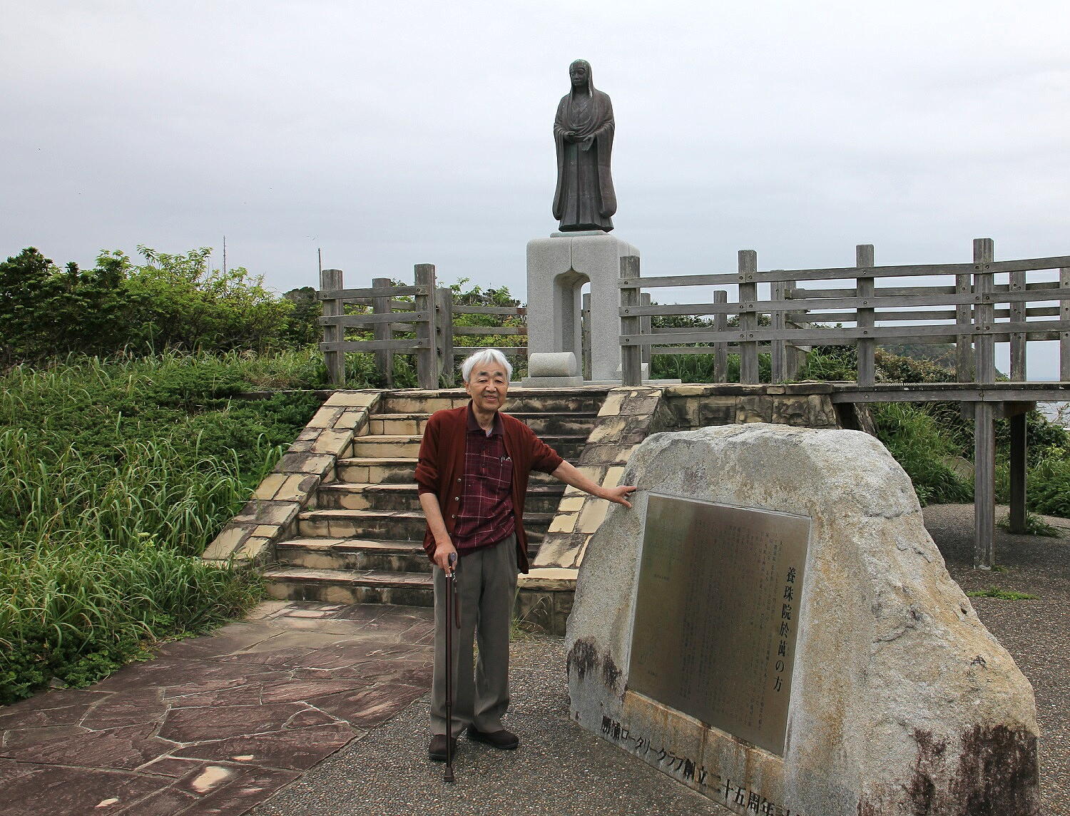 其の後、Y氏行き付けの、いや、定宿の繋船石柱公園で一服し、「勝浦城」「お万の布さらし」へ登る!緩い勾配だが、それでも百歩の山道を休み休み完登した。頂上(!)のベンチで15分ほど長々と伸びて大休止。Yは48キロの私を背負う積りでこの小山へ案内して呉れたのだ。