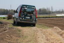 畦道をバックで入り込んでもらい、横穴式石室を覗きに歩く。小さい室だが、使っている石は大きく、立派な石組だ、と、城博士を気取る。尚、この石は栃木産の大谷石の由。