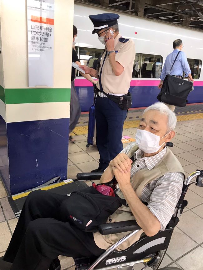 新幹線でも、飛行機の旅同様、予約も、書類も、費用も、必要なく、車椅子のサービスが受けられ、しかも、下車の駅にも連絡をしてくれ、快適な乗降が出来る事を初めて知った。