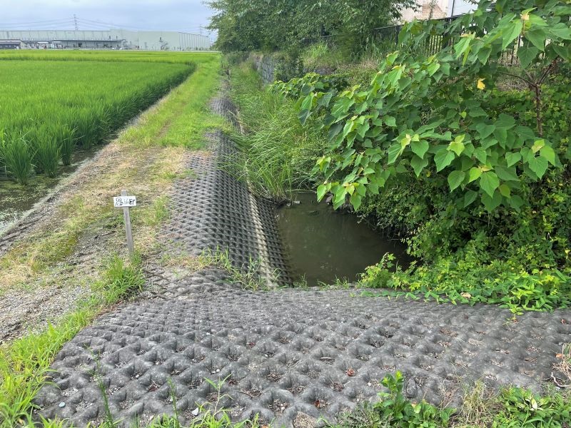 吉川市役所で落ち合って走り出してすぐと、Mさんが大場川の起点へ案内する。Mさんの自宅はこの近所だ。だから、わかるのだが、この草むらの中知らぬ人が見つけるのは不可能に近い。只、見つけたことに満足して、起点の文字を確認しなかったのは不覚であったが。(写真・1)
