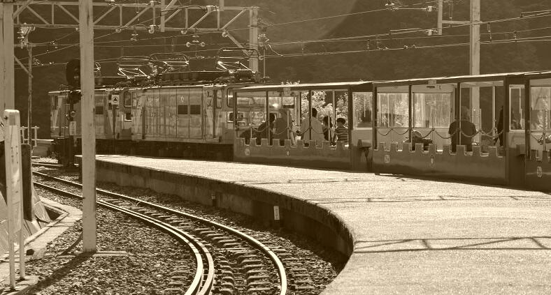 早起きして取りあえずトロッコ電車の始発駅に7時に着き乗車券を確保する。酷暑を避けて登ってくる観光客が群がる一足早い時間だった。